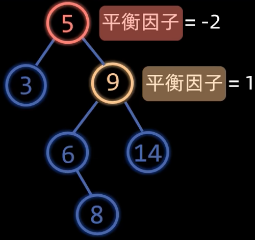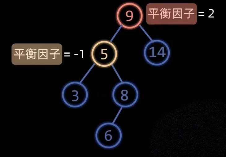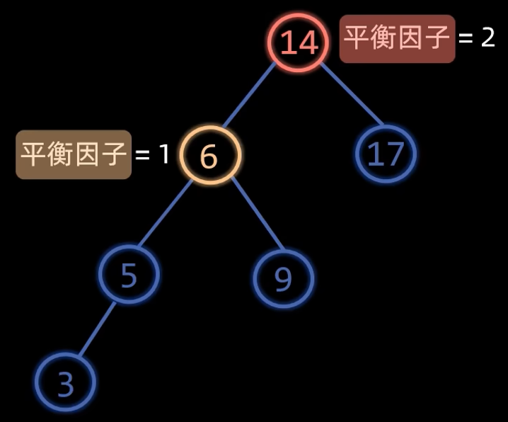 可以看到平衡因子为1的节点6变成了根节点,原来的根节点14变成了节点6的右子节点,节点6原来的右子节点9变成节点14的左节点,这就是网上常说的那句口诀:“冲突的右孩变左孩”。