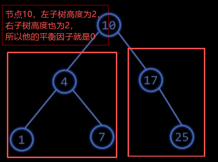 依次类推,节点17,左子树没有,所以左子树高度就是0,右子树高度为1,所以节点17平衡因子就是-1,