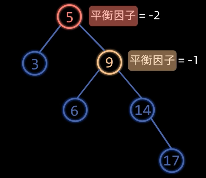 同理可知,因为节点17的插入,导致二叉搜索树根节点失衡了,平衡因子为-2,且根节点的右子树根节点的平衡节点为-1