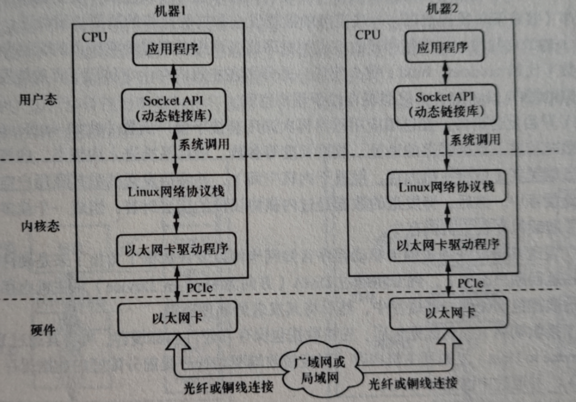 由以上过程可以看出,完成一次数据发送,需要完成两次用户态\内核态切换,两次数据拷贝且都需要CPU参与,对CPU造成负担,增加传输时延。