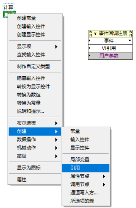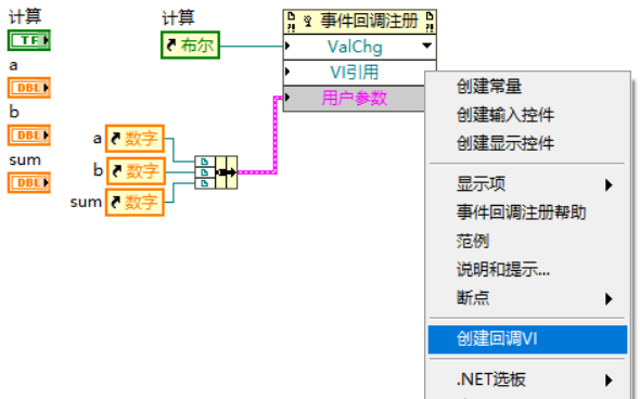 在事件回调注册的VI引用处右击,选择创建回调VI。