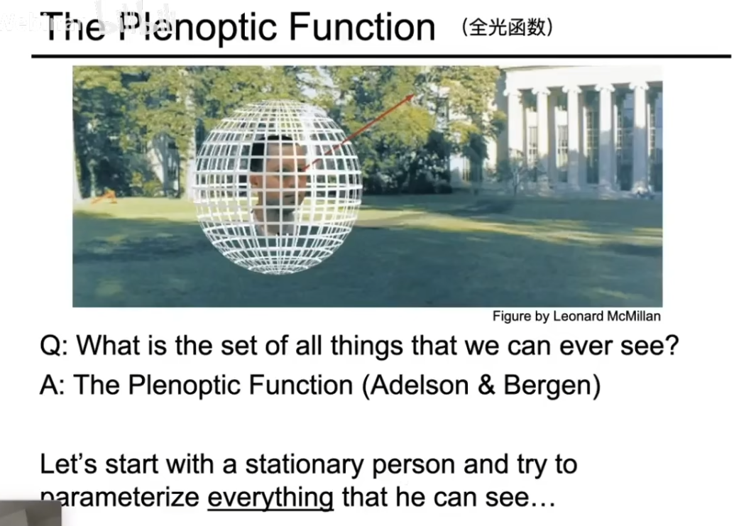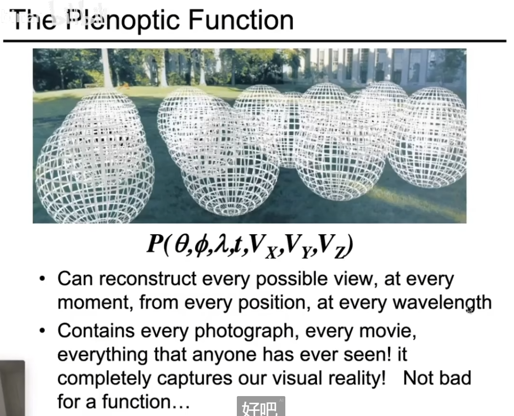 "全光函数" 是一个在计算机视觉和图形学中用来描述"一个人在任何位置、任何时间、从任何方向所能看到的所有光线"的数学模型。