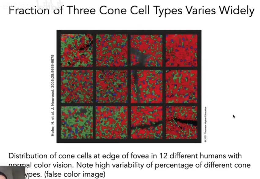 不同的人眼睛里的这三种细胞的占比是不同的。