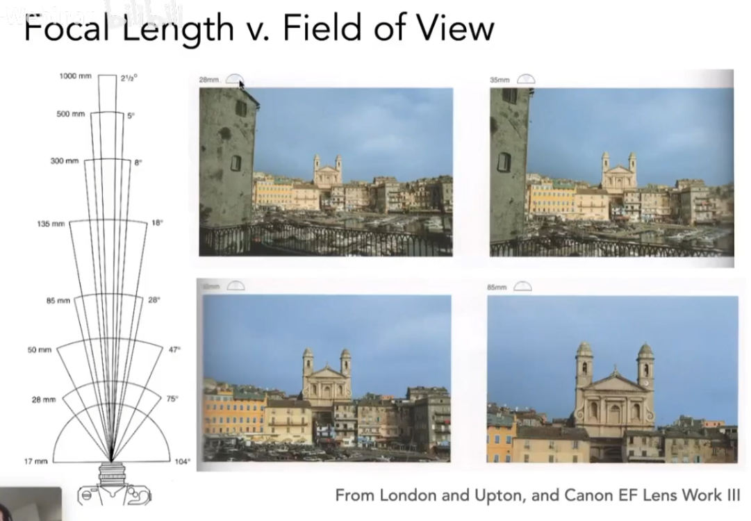 不同的视场会得到不同的拍照结果。由于视场同时受传感器大小和焦距影响,因此人们定义视场都是以35mm胶片(传感器大小固定)为基准的。