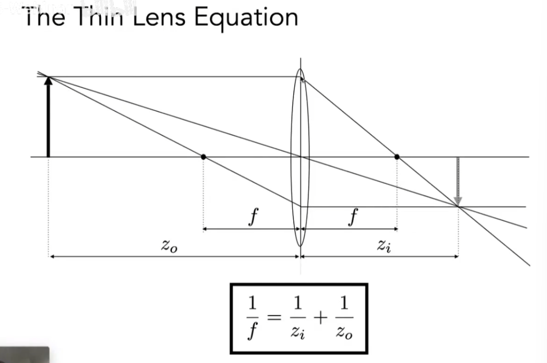 此外,透镜还有一些物理性质。例如过透镜中心的光的方向一定不会改变。物距为z0,像距为zi,焦距为f,满足如下薄透镜公式: