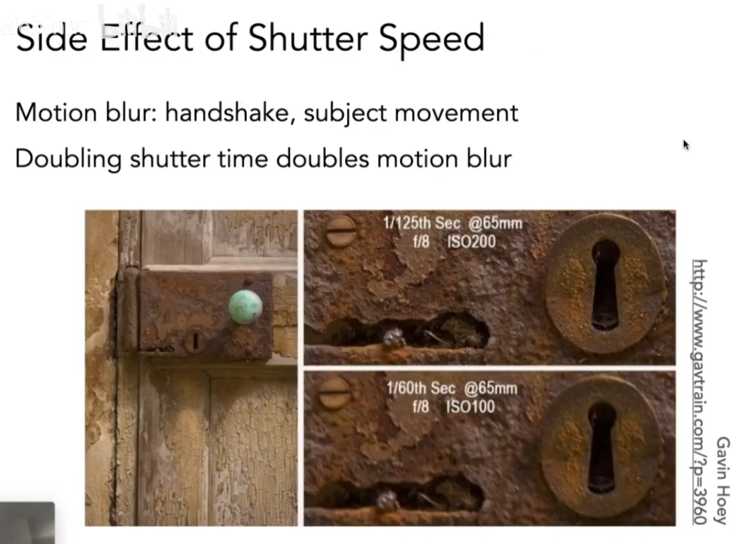 快门开启时间长,会出现运动模糊,曝光度会提高。