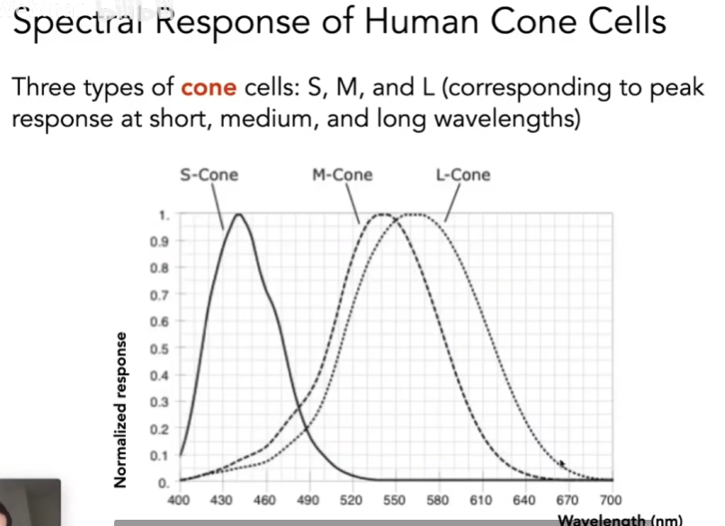 感光细胞有三种,s、m、l,分别感知小波长、中间波长、长波长。