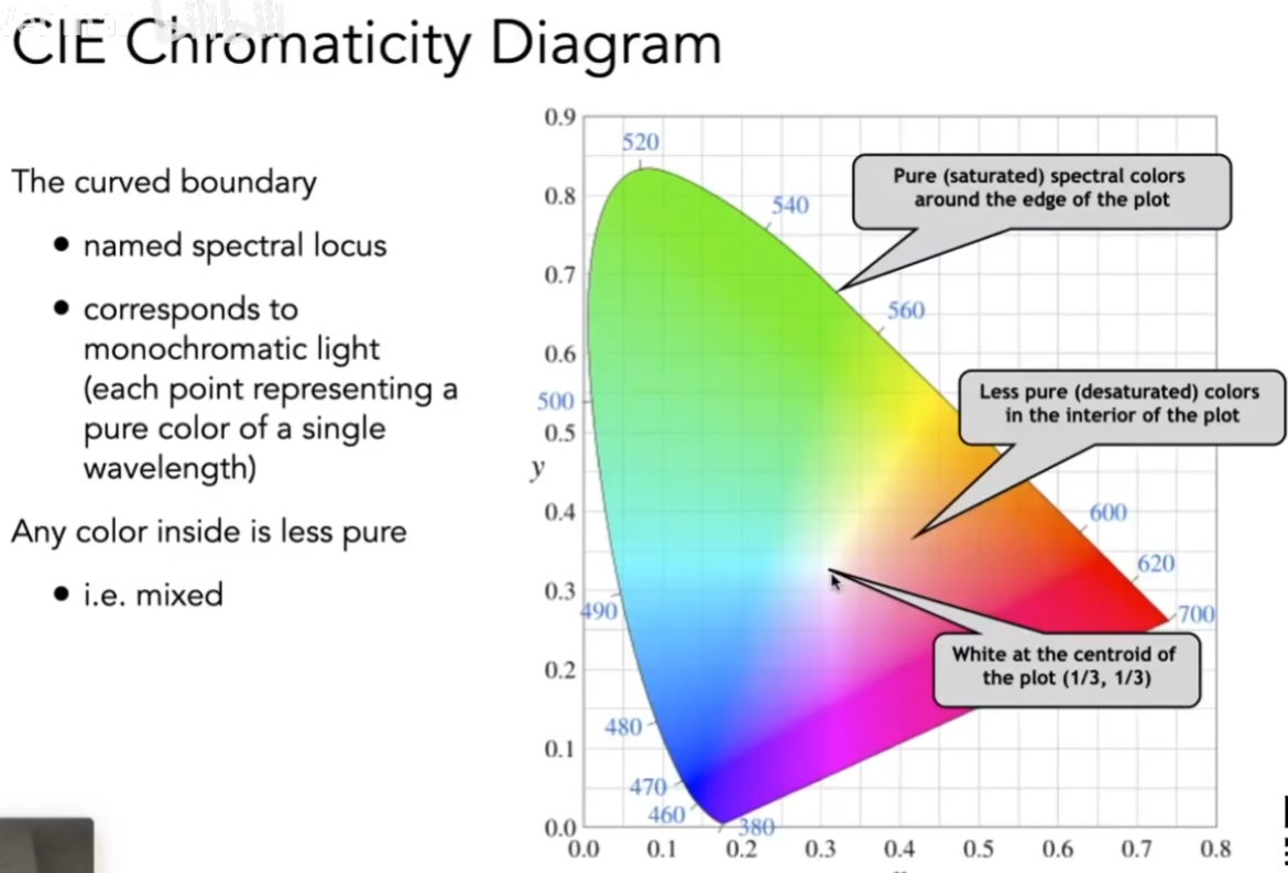 下图就是色域。色域包含了一个颜色空间能表示的所有颜色。