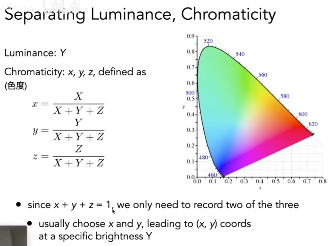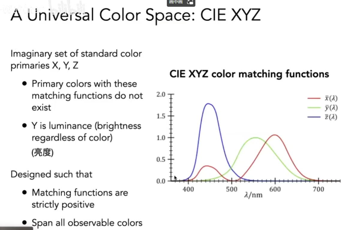 人造的颜色匹配系统,颜色匹配的曲线都是人为定义的。其中y表示的是亮度。