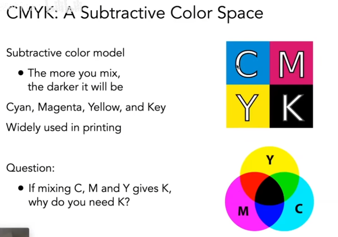 把颜色混合在一起会越混越黑,在打印上很好用,因为可以调出各种不同的颜色。