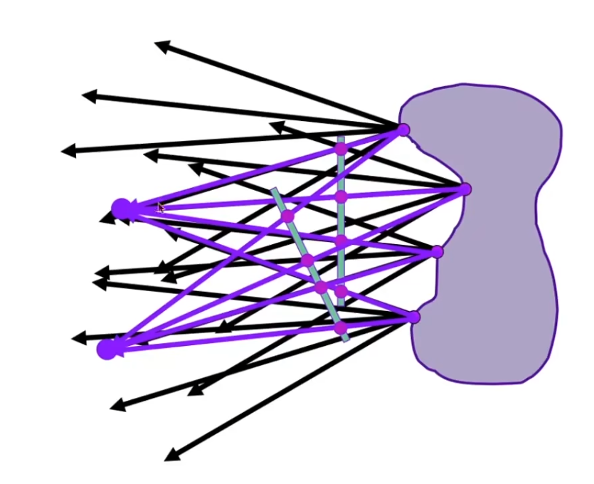 我们在Sensor成像平面上选一个点,透镜上选一个点,给这两个点连线。这样,我们就会知道这条光线会打到哪个点。算出这条线的radiance,记到初始点上即可。