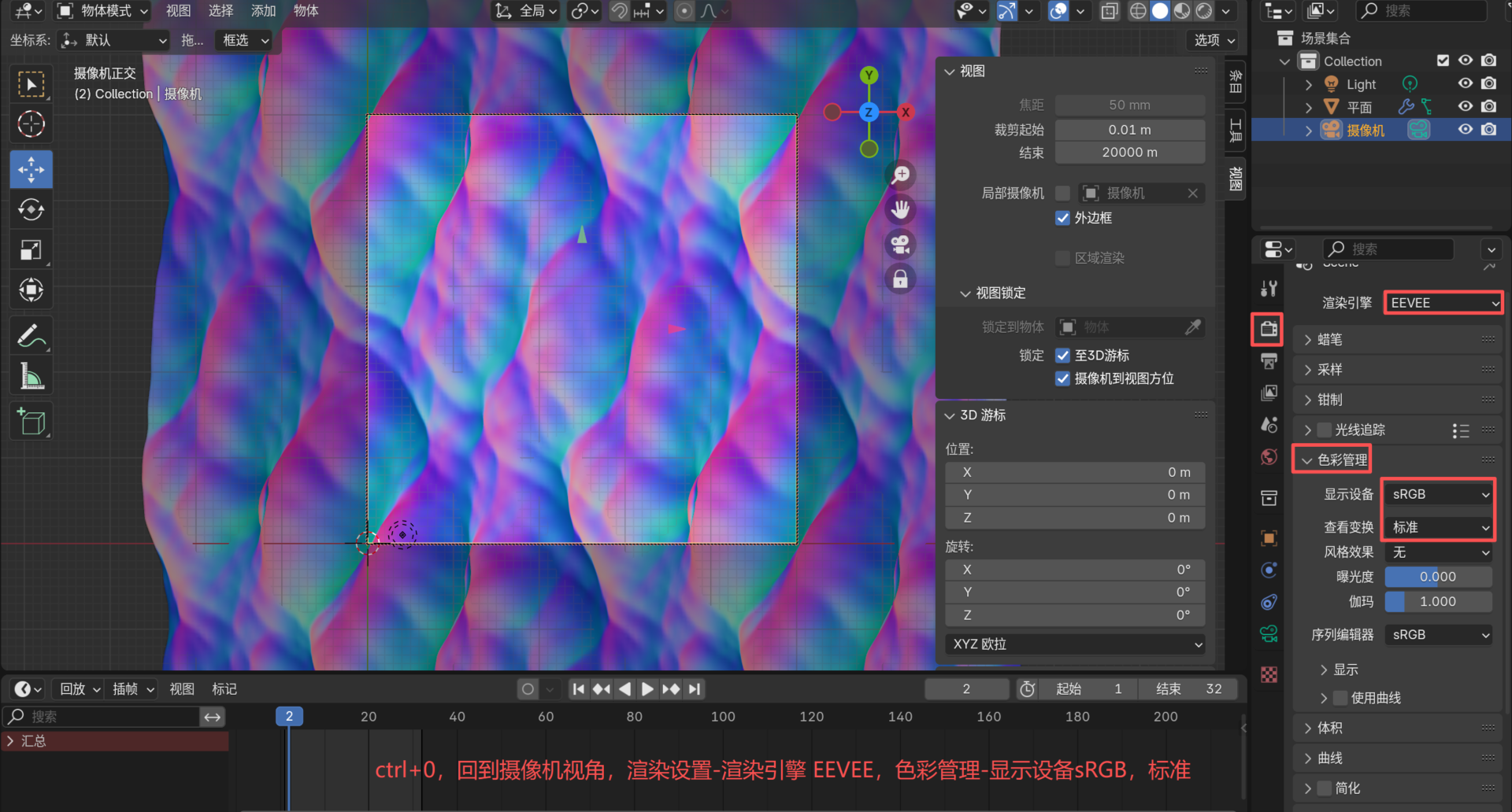 渲染器使用EEVEE即可,色彩管理 显示设备要sRGB。