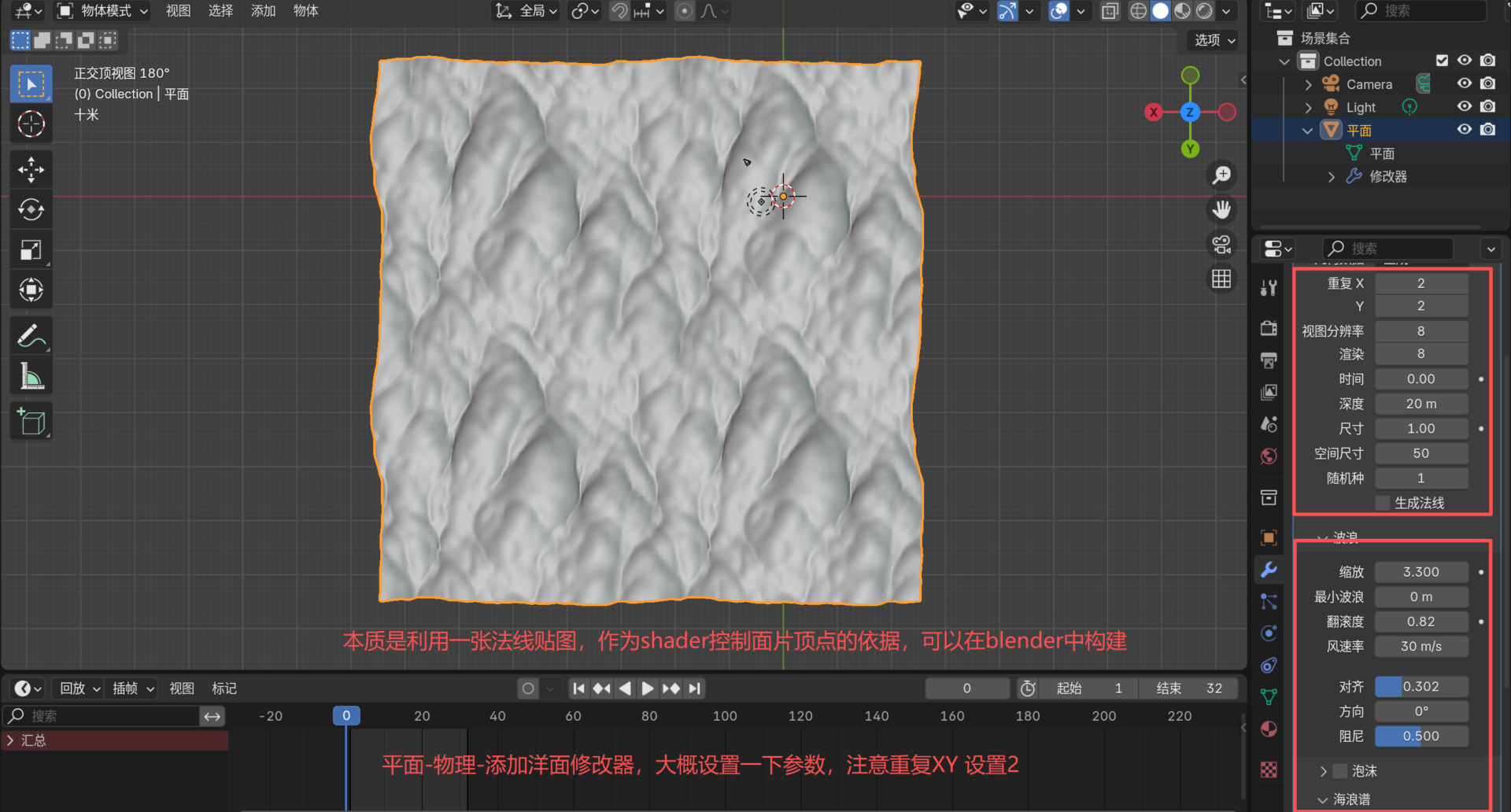 我想做个水面波浪,没有别的软件,没有找到合适的图片,就用Blender吧。