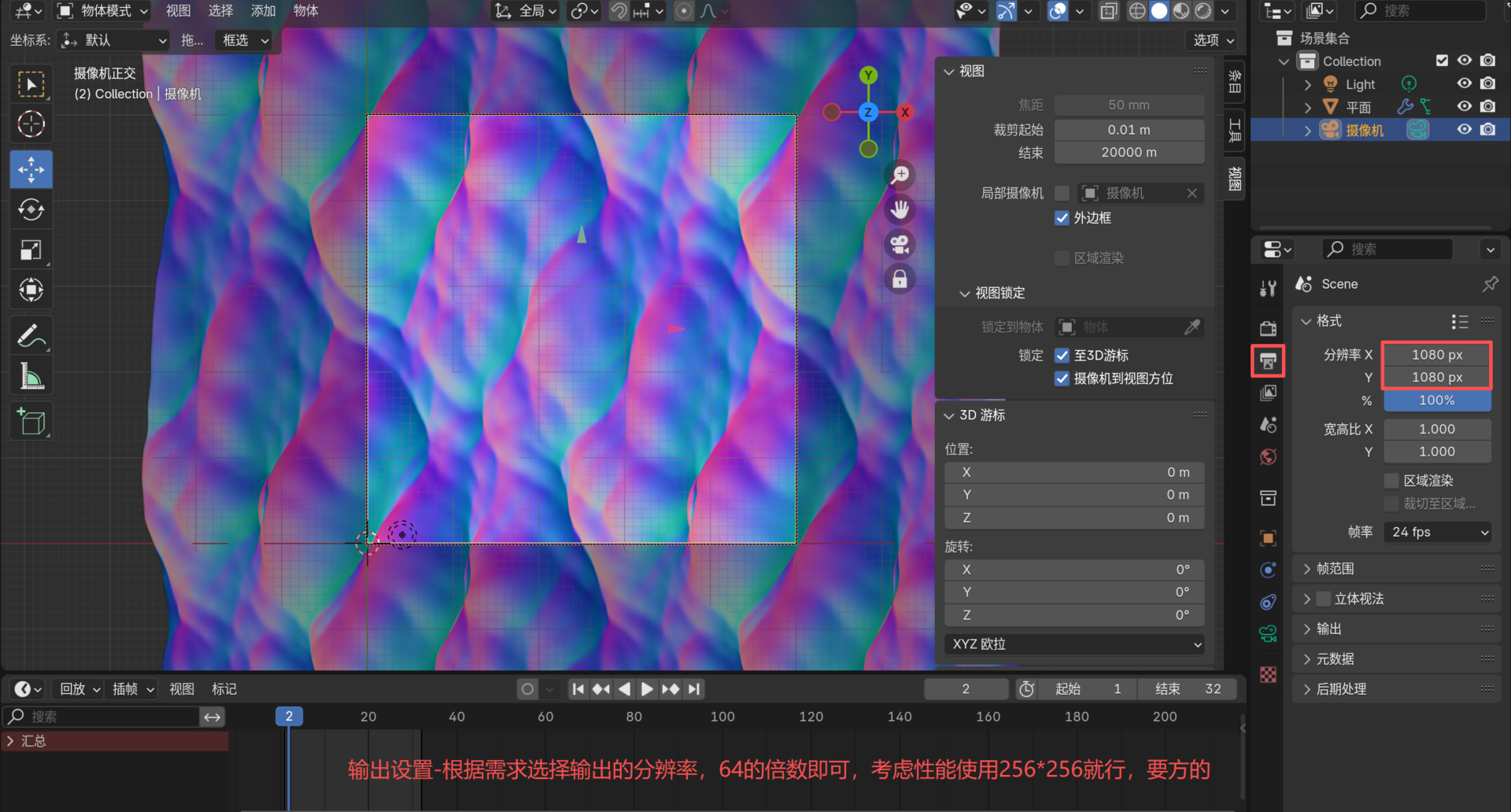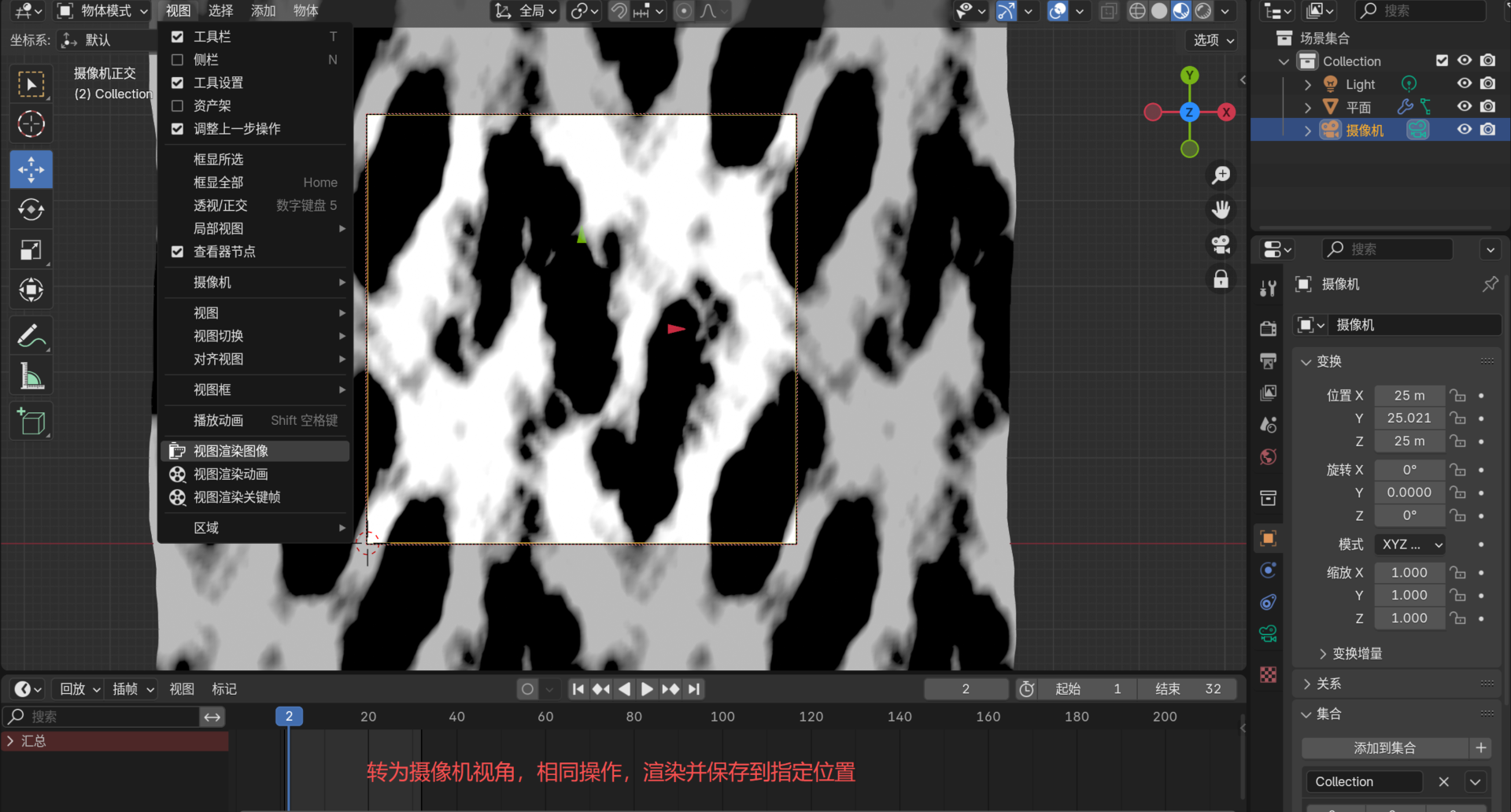 摄像机视角,同样的渲染,导出。