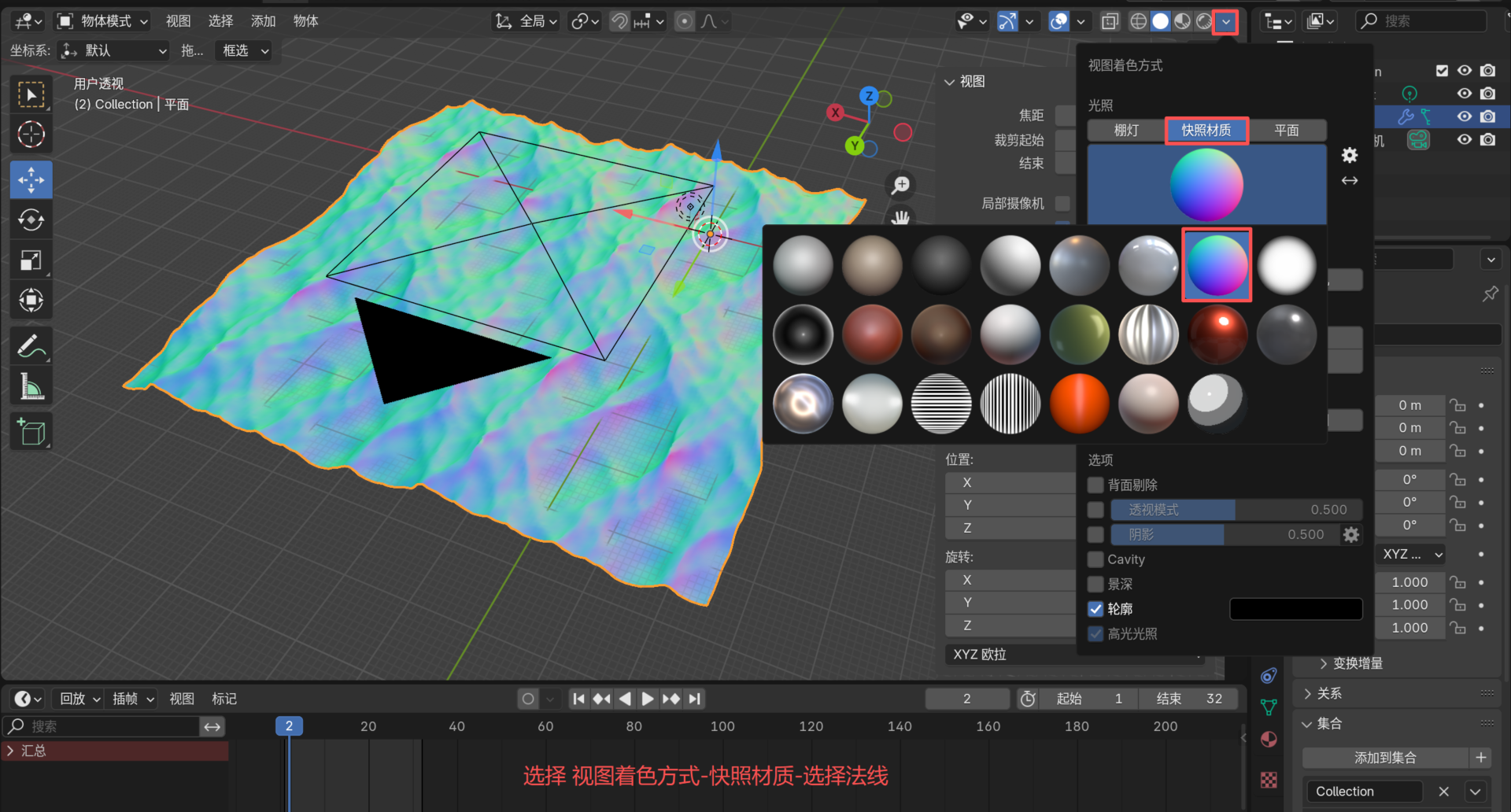 视图着色方式切换法线。