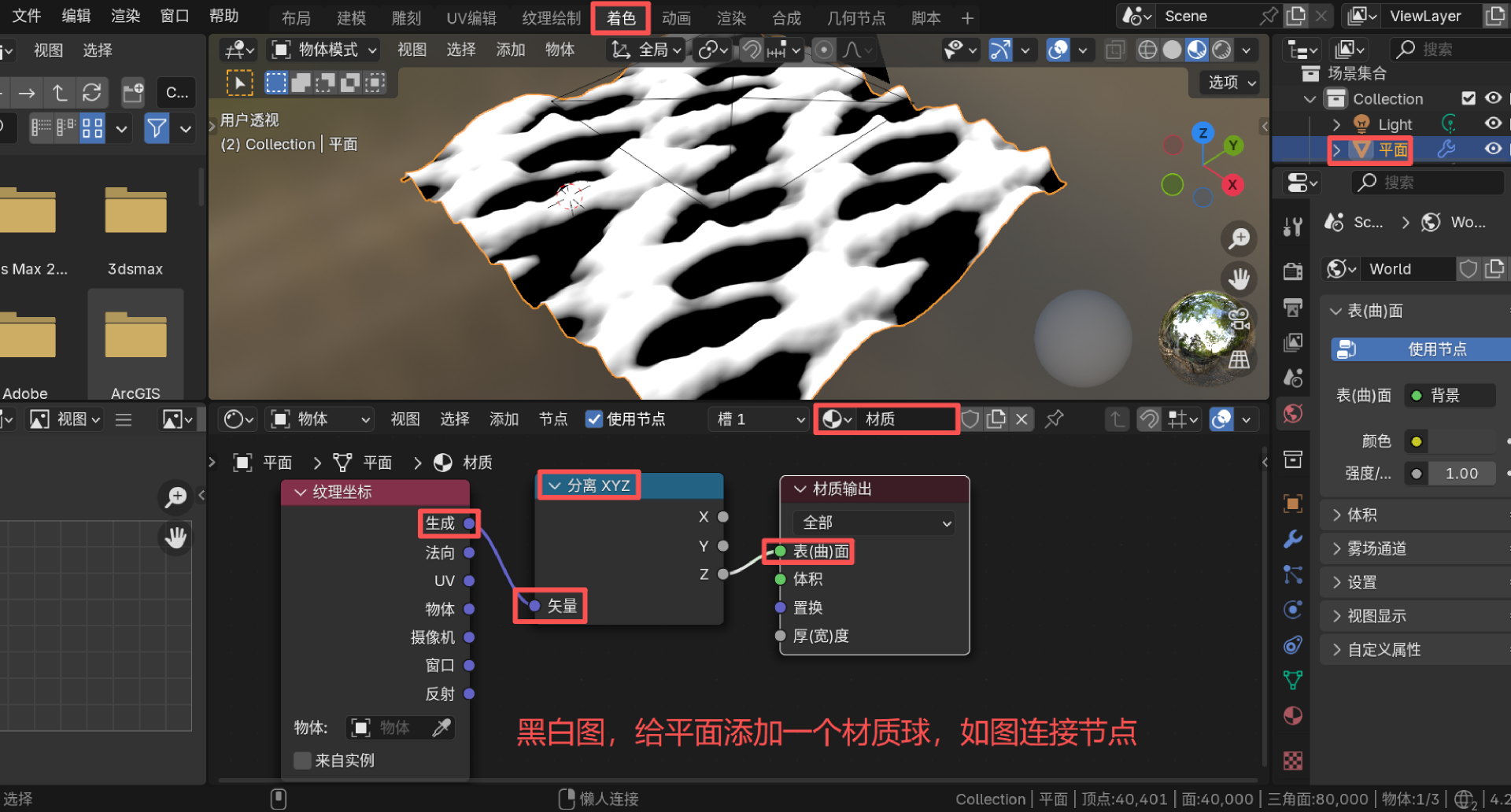 给面片,新建一个材质,如图连接节点。