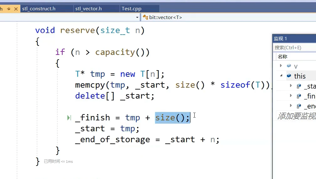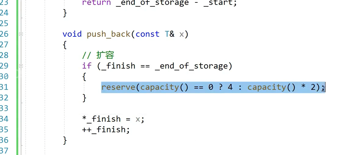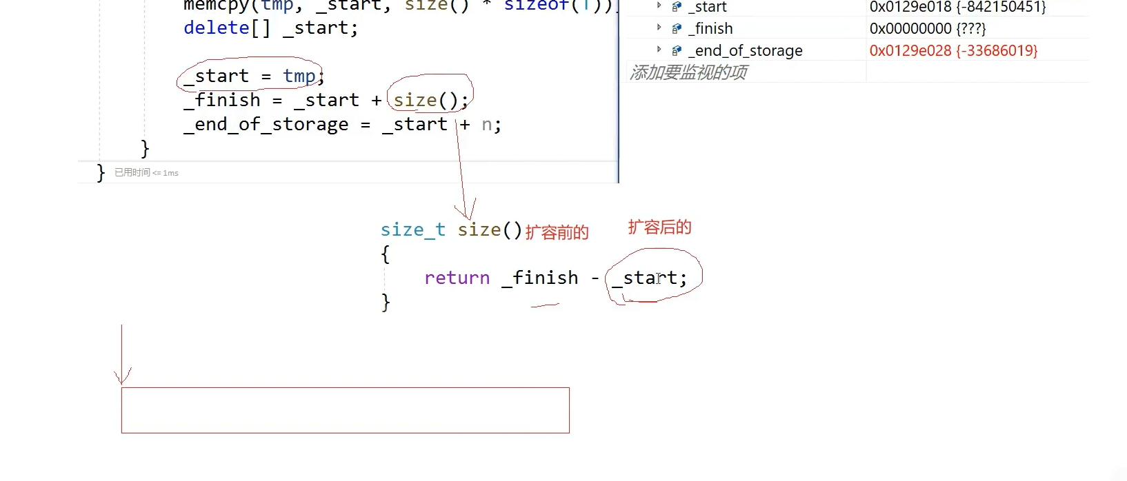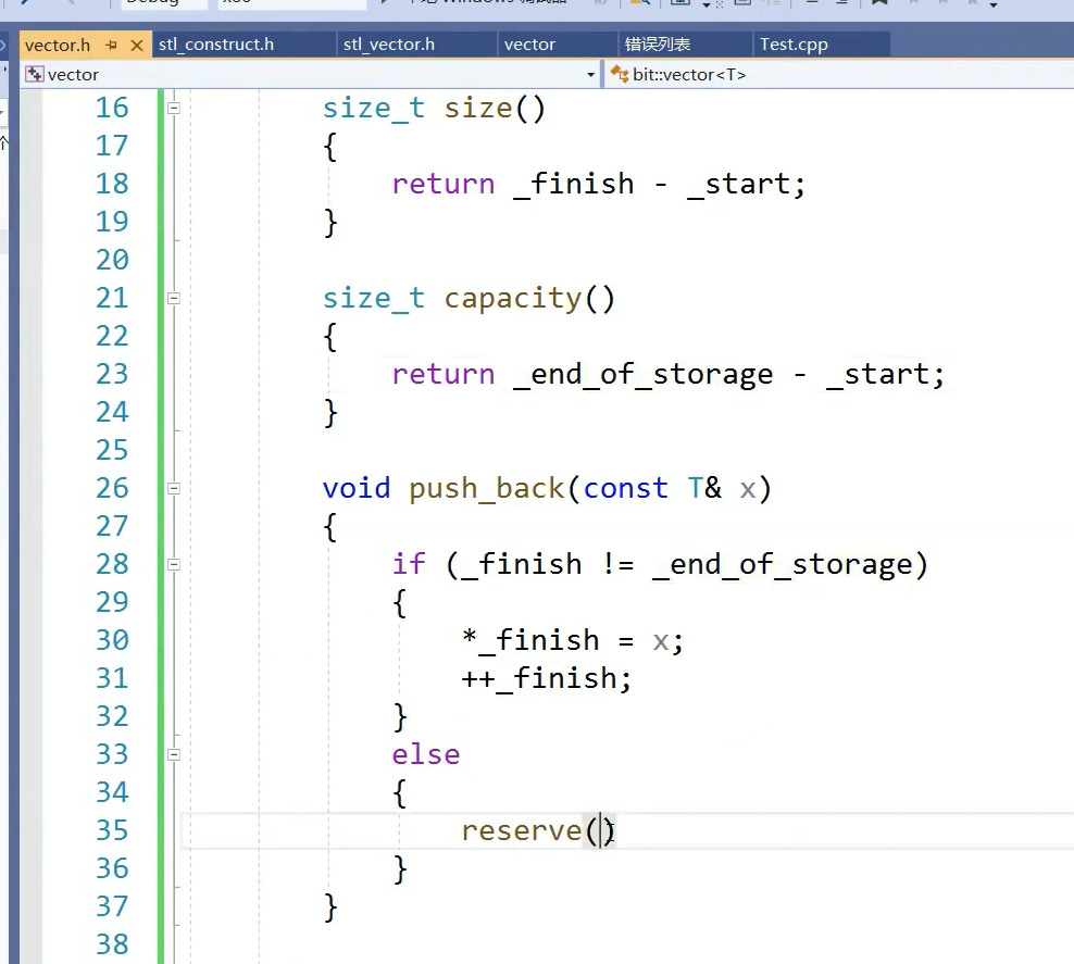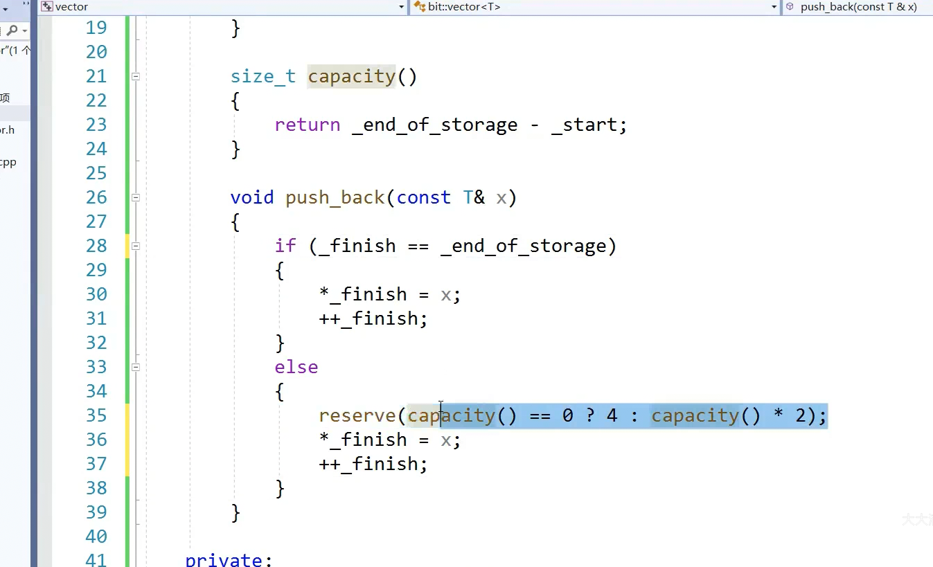 reserve这用size capacity 都一样,finish和endof storage都是相等的,