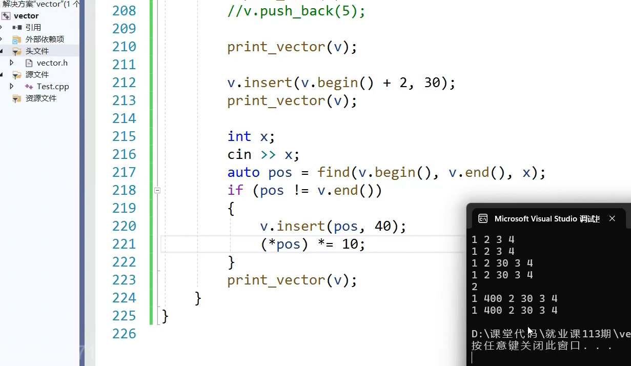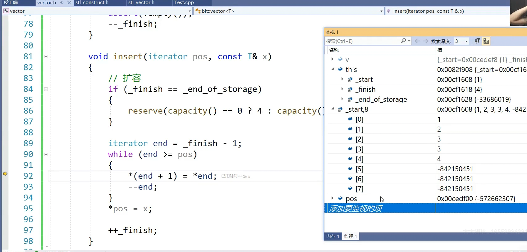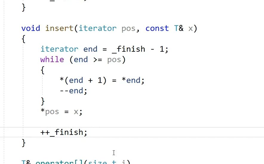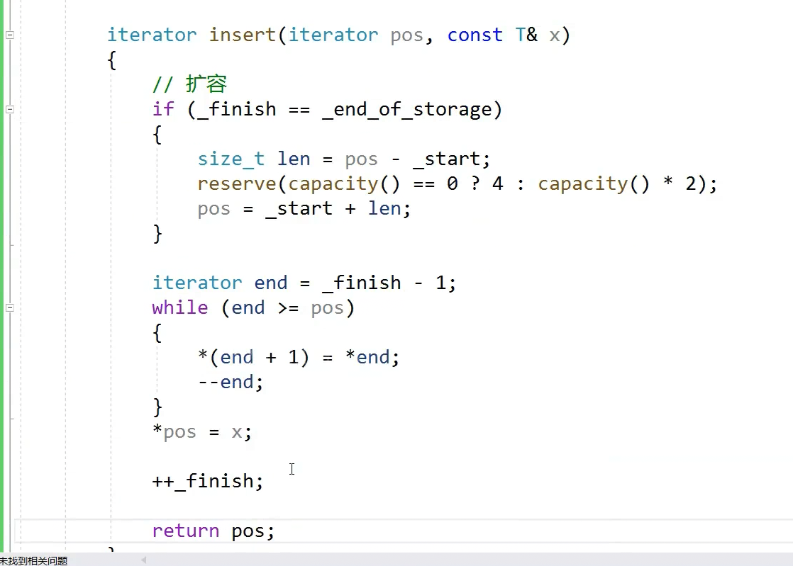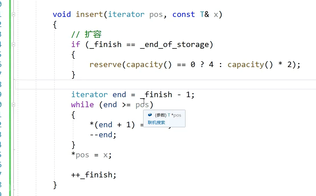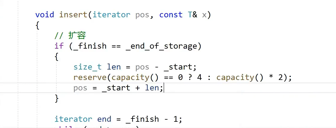 接下来写一个更复杂的插入: pos是个迭代器,有效迭代器不是0,所以没string 那么复杂