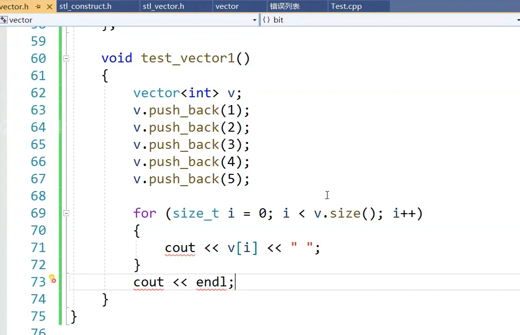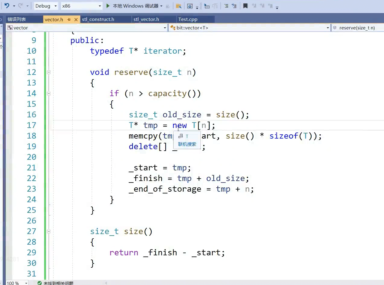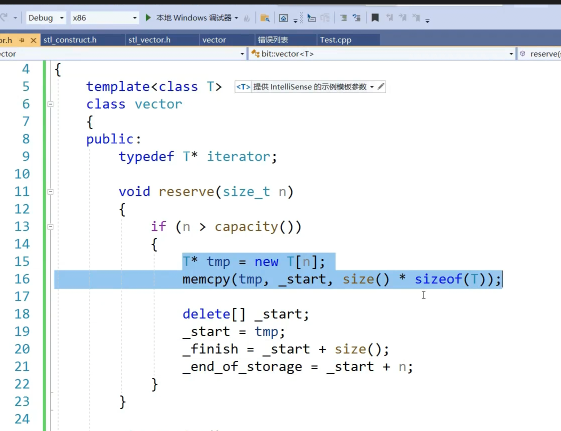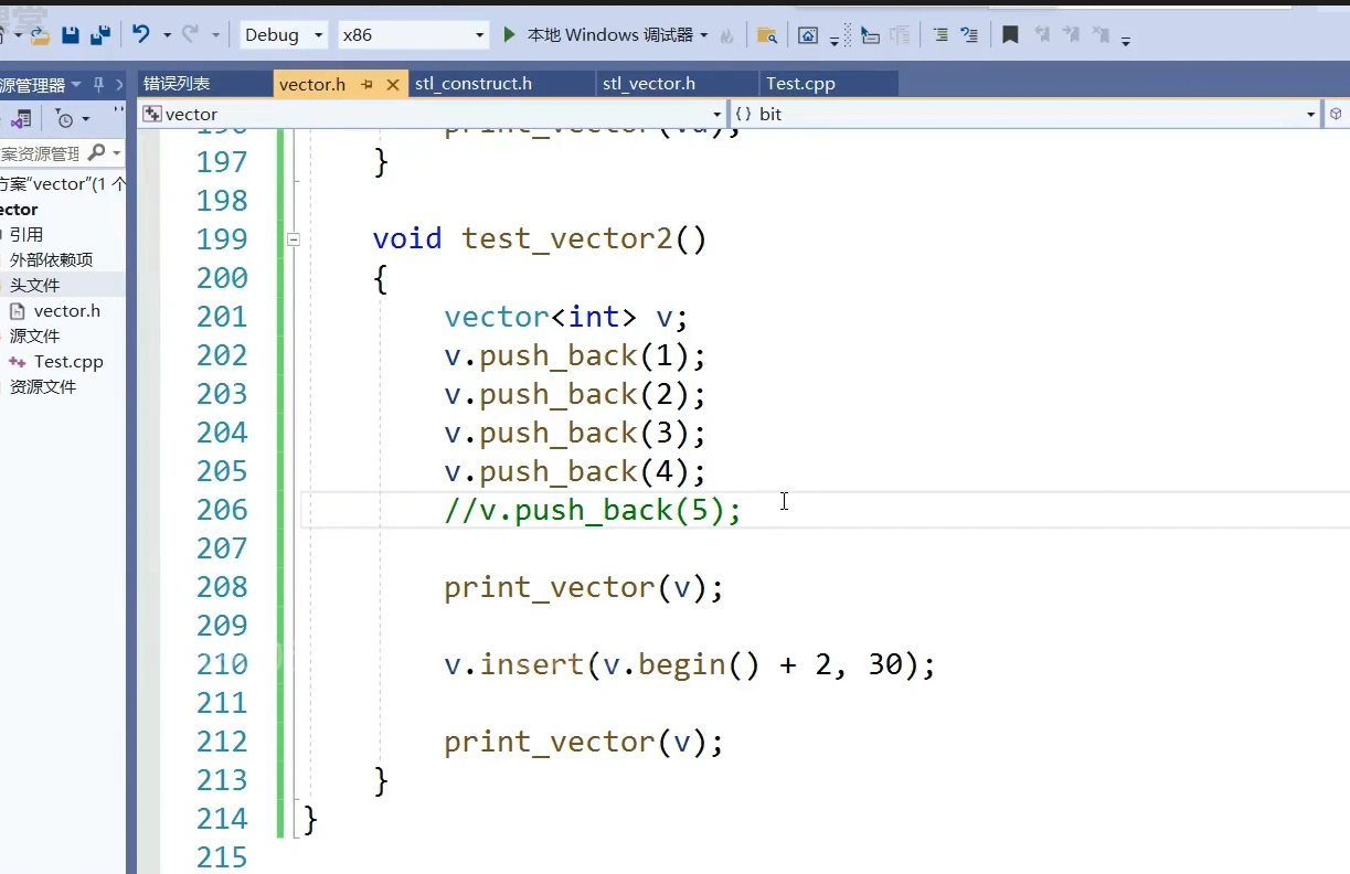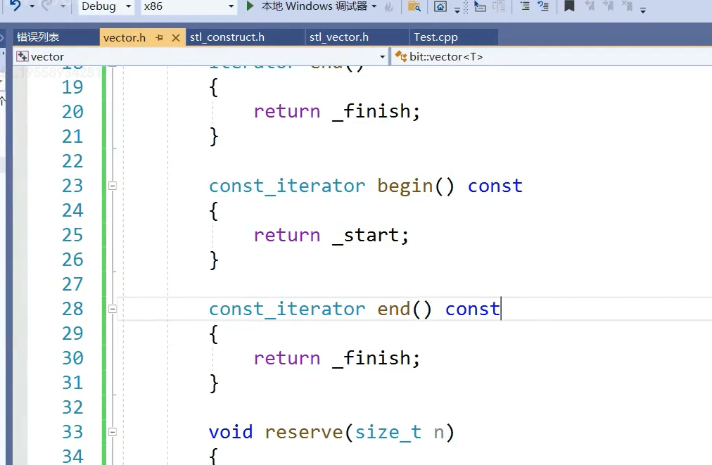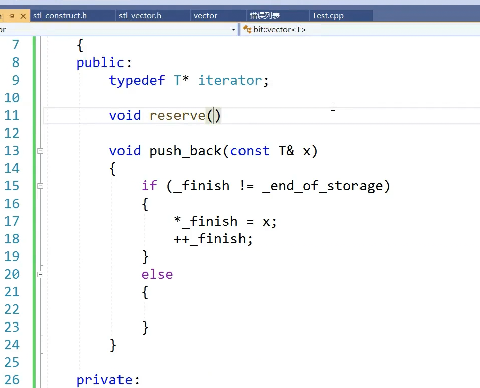接下来写一个更复杂的插入: pos是个迭代器,有效迭代器不是0,所以没string 那么复杂