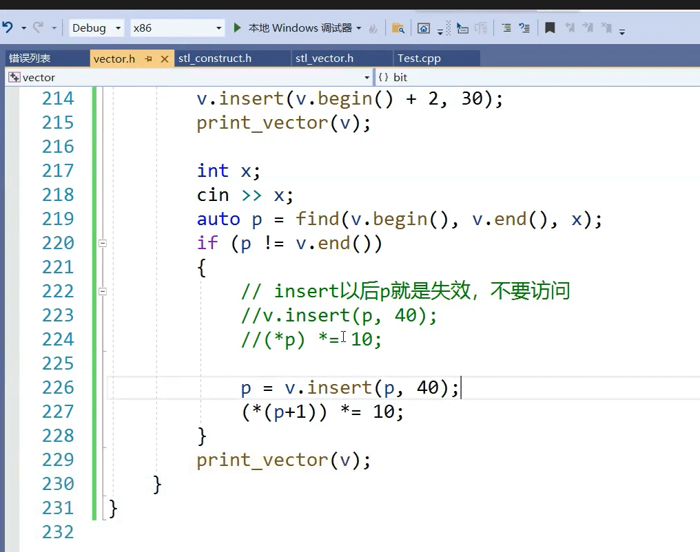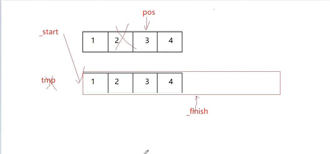 insert以后可以认为pos已经失效了,pos本来是指向2的,插入数据后挪走了,pos不指向2了,这种也是迭代器失效,