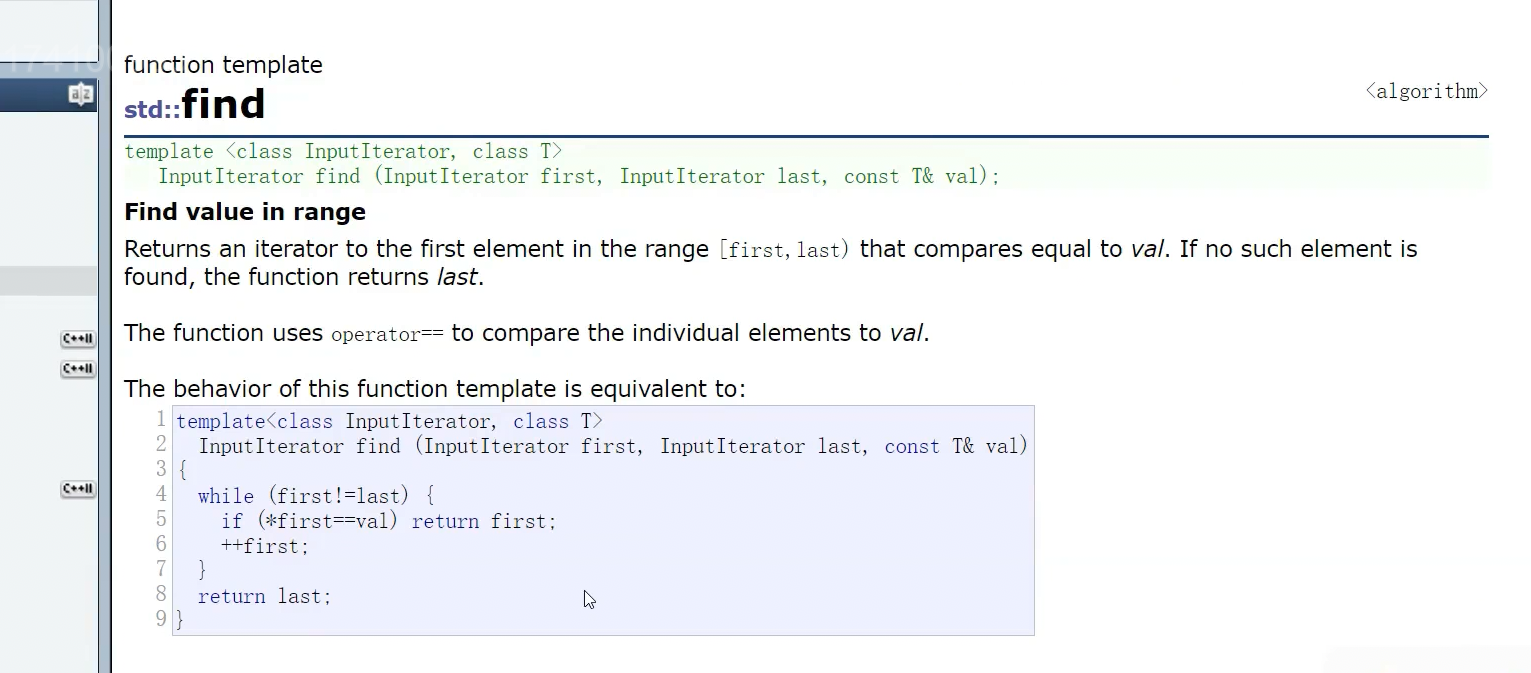 跟逆置一样,不仅仅是一个容器,针对所有容器,迭代器传给我,就可以帮我搞,模版,C++所有算法传迭代器区间都有个要求,传左闭右开,没找到返回last,