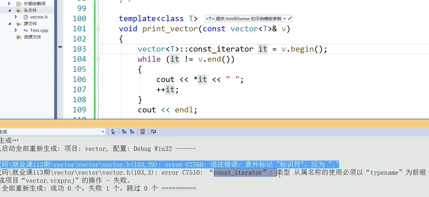 类::这样可能取到类型也有可能取到静态成员变量,类模版是没有实例化的,编译器从上往下编译到这第三行vector<T>不知道,不敢去里面取东西,