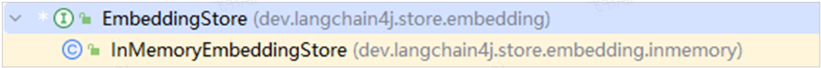 其实在我们引入的依赖中已经提供了一个用于操作内存版本的向量数据库的类InmemoryEmbeddingStore,Inmemory是内存的意思,Embedding翻译过来是嵌入/向量的意思,Store是存储的意思,顾名思义,操作内存向量数据库。我们只要new出来一个对象即可。