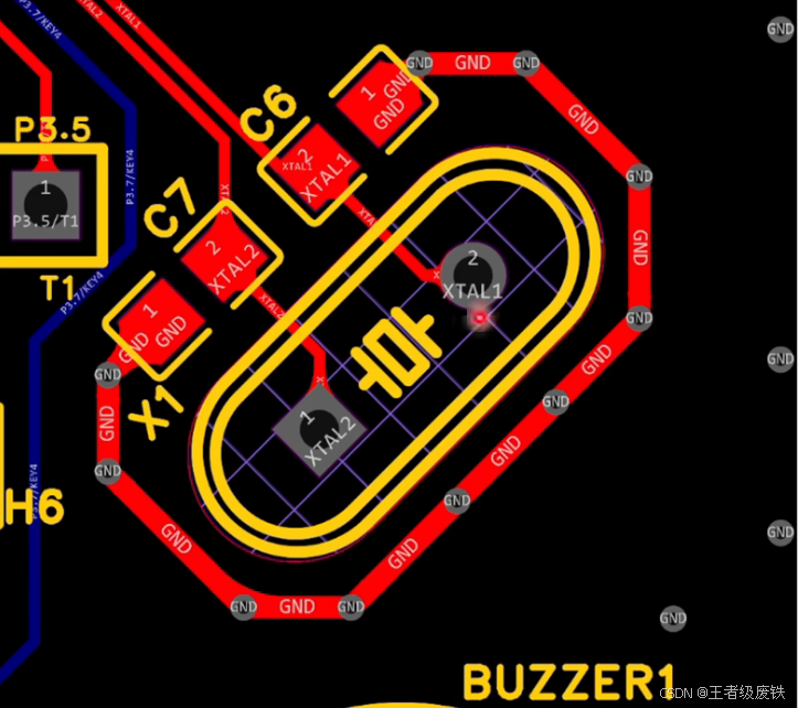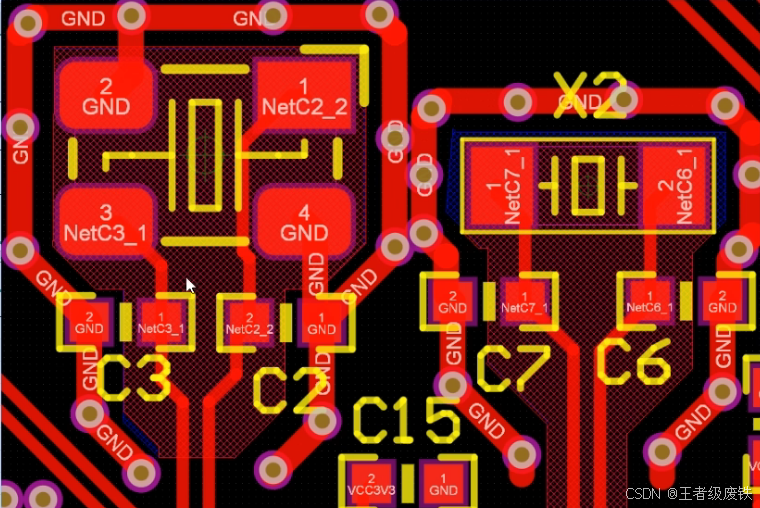 3、一般晶振和时钟类电路部分都需要进行包地处理