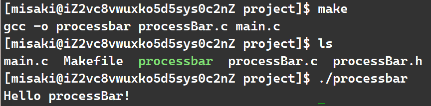 这样我们输入make指令就会生成processbar的程序,需要清除项目使用make clean即可。