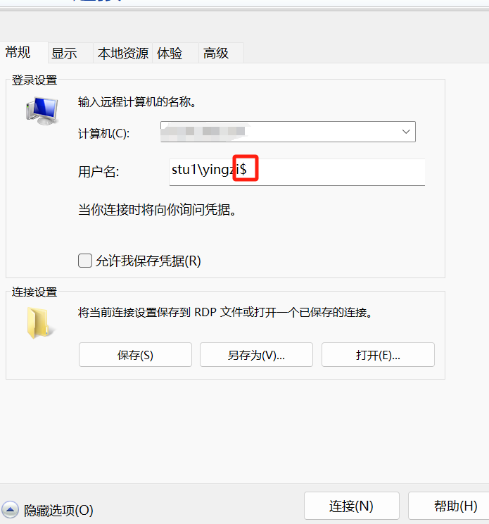 记住,创建的账号是本地账号而不是域账号。远程桌面登录的时候记得加$,Windows 中带 $ 的账号通常是 隐藏的系统 / 服务账号,默认不显示在用户列表中。