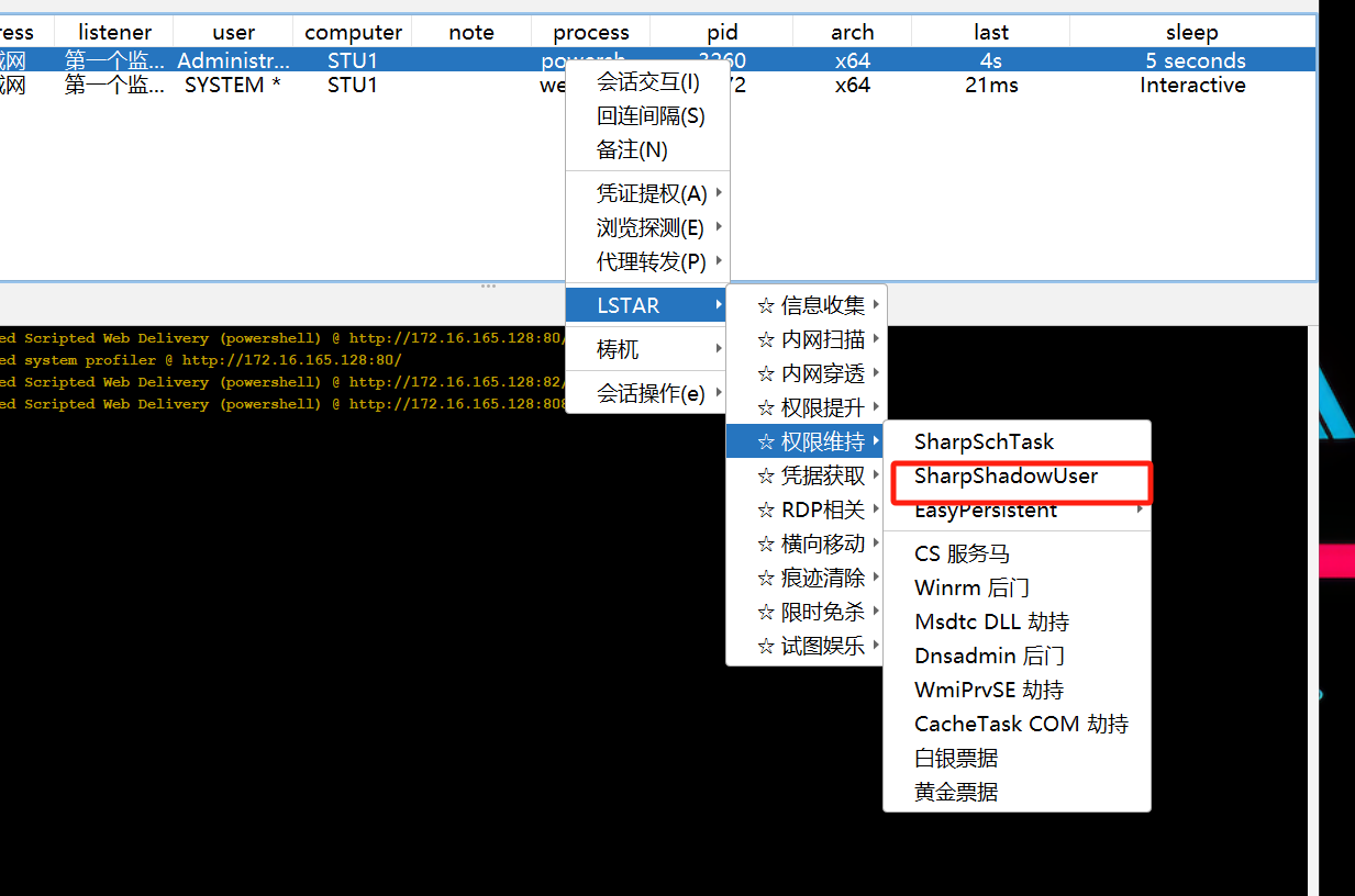 使用 CS 中的 Sharpshadowuser 可以创建隐藏账号(克隆账号,相当于影分身之术,并且把分身藏了起来。),注意 Win7 靶场的 Administrator 账号没有激活,因此创建成功也无法登录。因为大部分目标的Administrator 账号是没有激活的。