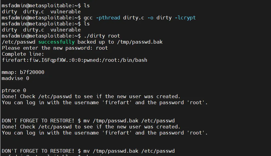 好了然后下载dirty.c文件并且上传上去,网址:dirtycow/dirty.c at master · firefart/dirtycow · GitHub