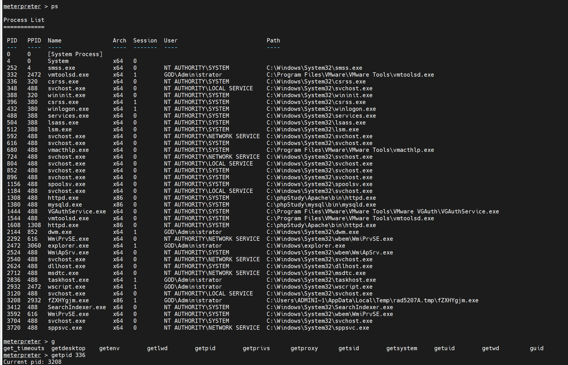 - System: 系统权限。可以对sam等敏感文件进行读取,往往需要将administrator权限提升到system权限才可以对散列值进行DUmp操作