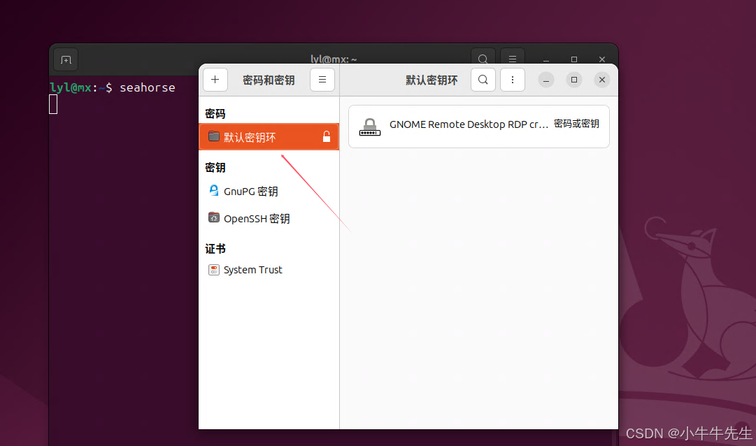 1.打开命令行终端输入下面的命令启动 “密码和密钥” 应用