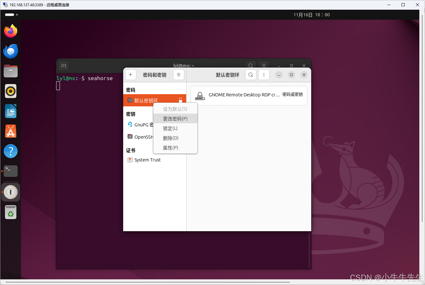 2.找到默认密钥环或者名为登录的密钥环,右键修改密码