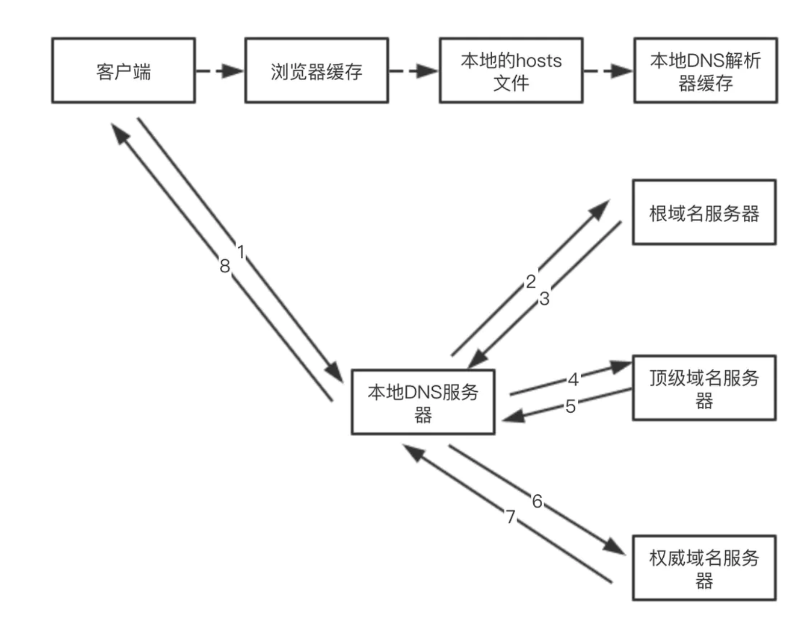 DNS 查询: 浏览器会检查本地缓存和 Hosts 文件,如果没有找到