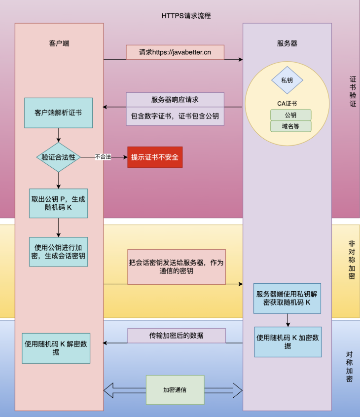 证书验证: 客户端(浏览器)验证服务器的证书: