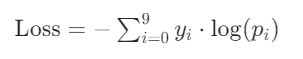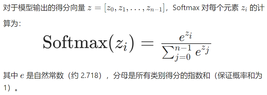对应历程代码中的过程是:CrossEntropyLoss对 output 的每一行(每张图片的 10 个评分)应用 Softmax 函数,将原始评分转换为 “概率”(值在 0-1 之间,且 10 个类别的概率和为 1)。再代入公式CrossEntropyLoss=-log(pk)得到交叉熵损失值,赋值给loss,loss 是一个标量张量(shape 为 ())。