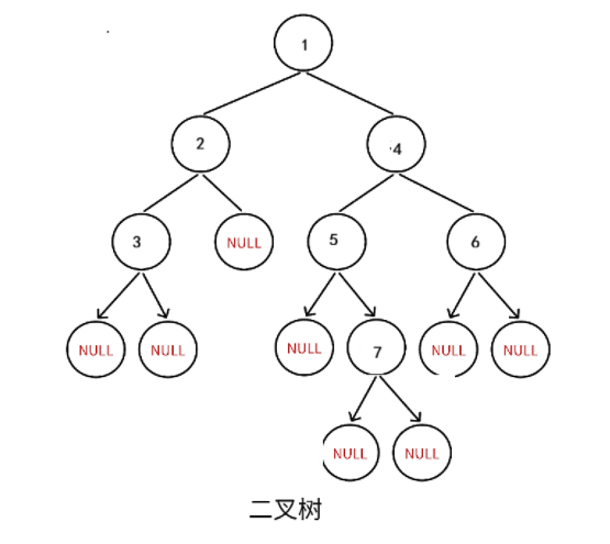 {//创建结点BTNode* node1 = CreateNode(1);BTNode* node2 = CreateNode(2);BTNode* node3 = CreateNode(3);BTNode* node4 = CreateNode(4);BTNode* node5 = CreateNode(5);BTNode* node6 = CreateNode(6);BTNode* node7 = CreateNode(7);//连接结点构成二叉树node1->left = node2;node1->right = node4;node2->left = node3;node4->left = node5;node4->right = node6;node5->right = node7;return node1;