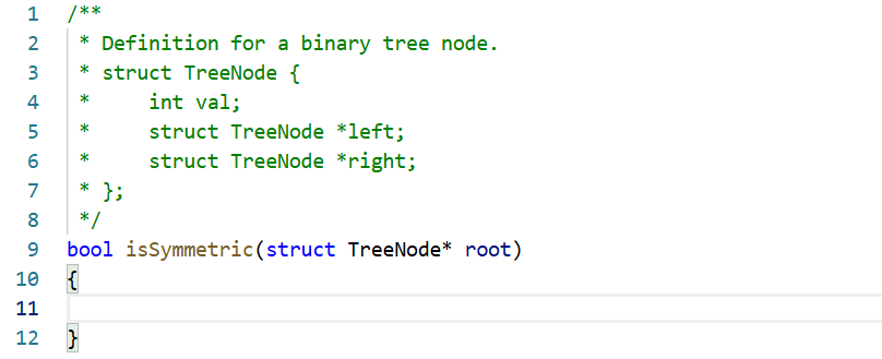 }bool isSymmetric(struct TreeNode* root)