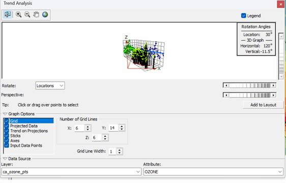 利用【Trend Analysis】工具,对数据的全局趋势进行分析,得到的趋势图如下,可以看出数据在东西向有很强的趋势,而南北向的趋势则较弱。