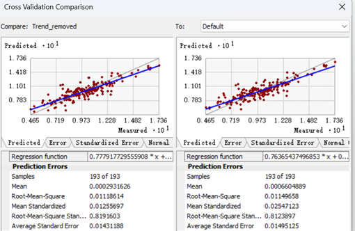 可以直观看出Trend_removed层的均方根预测误差较小,其均方根标准预测误差更接近于 1,而平均预测误差更接近于 0,因此,有理由相信“Trend removed”模型更有效。