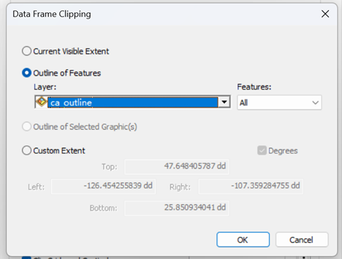 只做加州范围内的臭氧浓度图,因此按步骤进行裁剪,设置如下。
