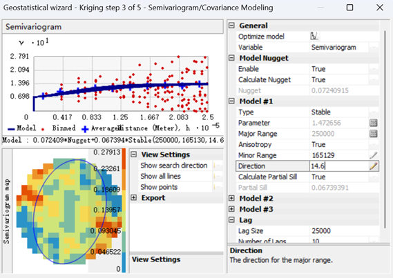 继续调整参数为Angle direction=340.0,Angle tolerance=45.0;Bandwidth(lags= 3.0,得到又一个结果。