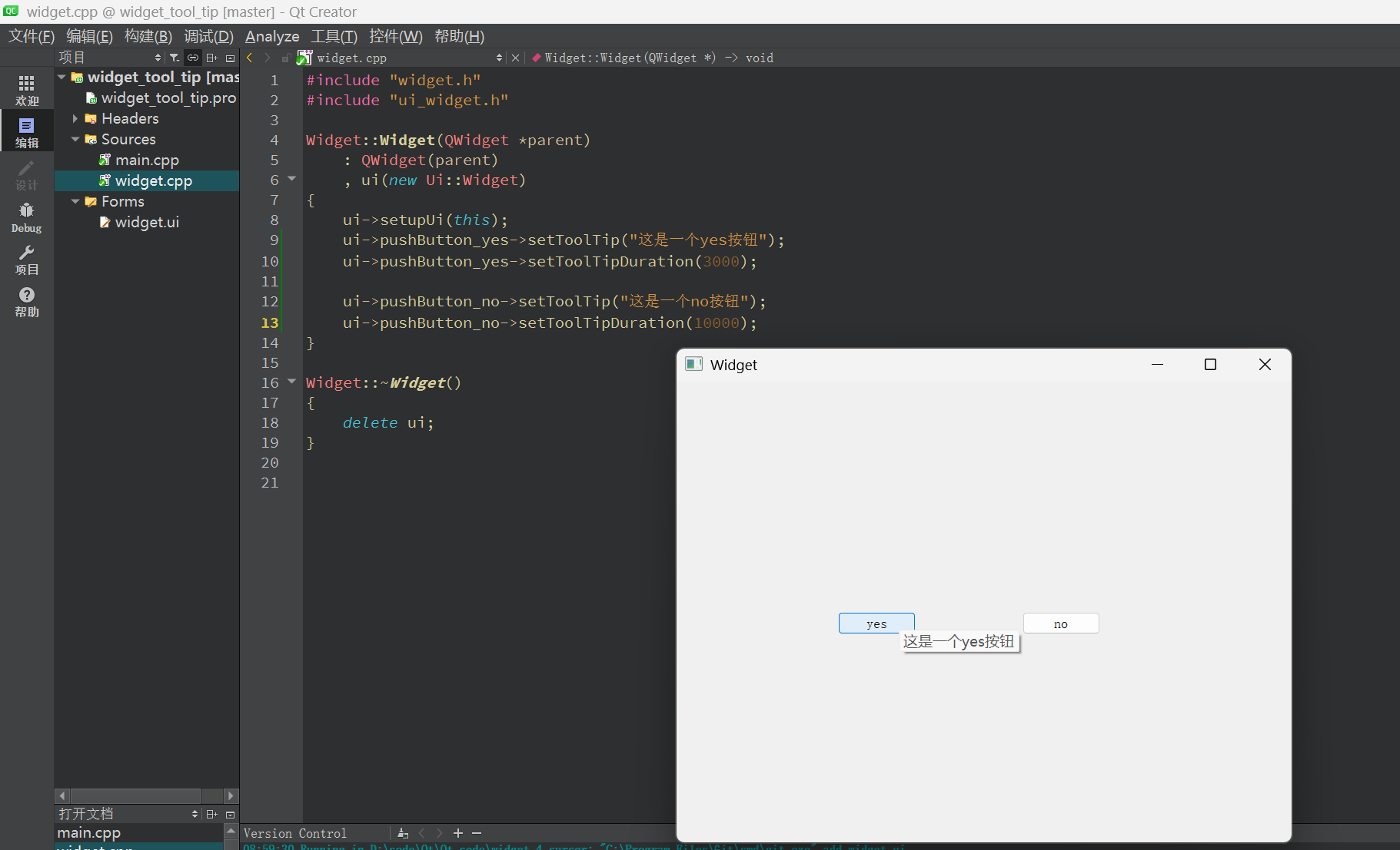 {ui->setupUi(this);ui->pushButton_yes->setToolTip("这是一个yes按钮");ui->pushButton_yes->setToolTipDuration(3000);ui->pushButton_no->setToolTip("这是一个no按钮");ui->pushButton_no->setToolTipDuration(10000);