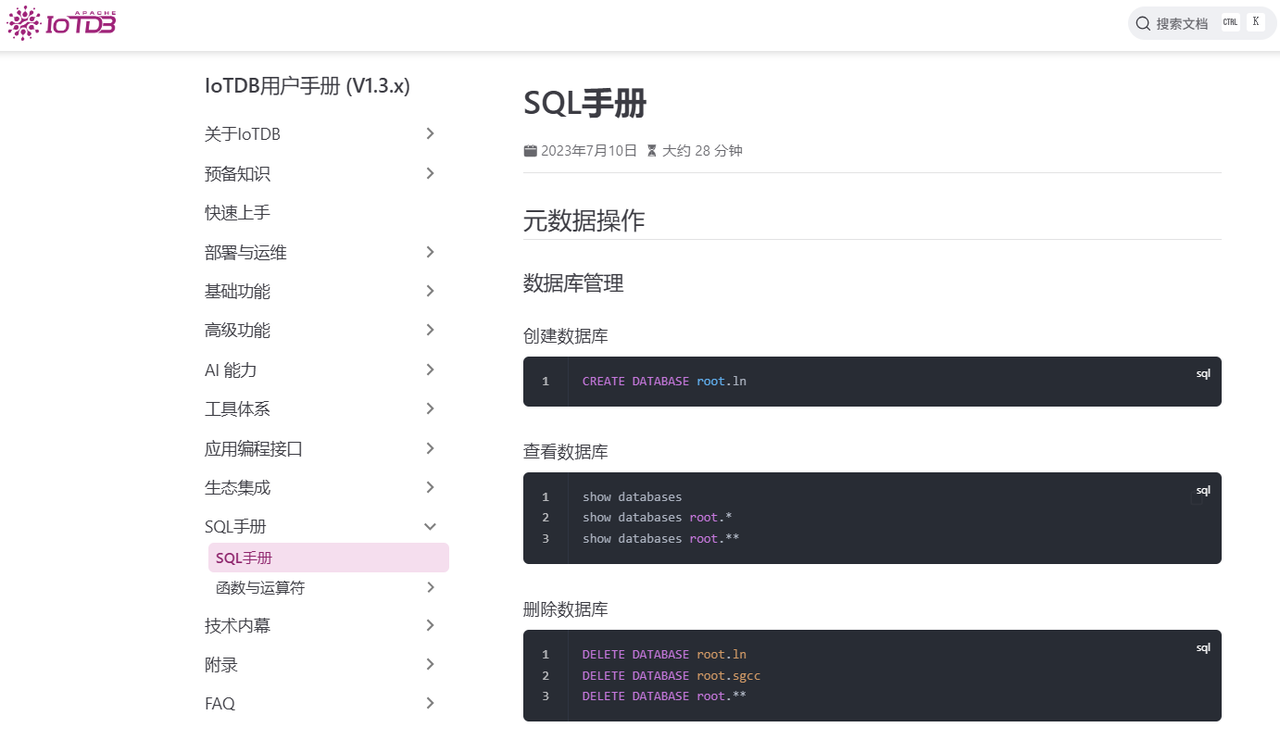 更多的SQL相关的操作可以参考官方提供的文档:https://iotdb.apache.org/zh/UserGuide/V1.3.x/SQL-Manual/SQL-Manual.html