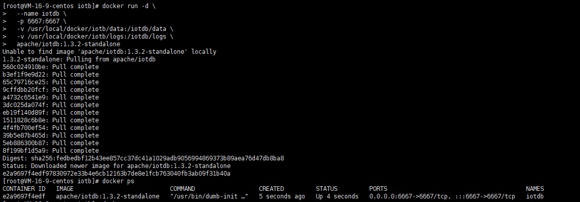 --name iotdb:为容器指定一个名称,方便管理。 -