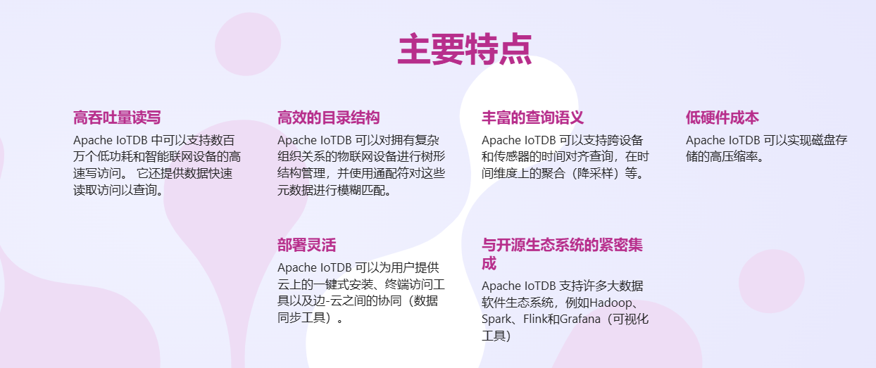 Apache IoTDB 作为一款性能优异的时序数据库,具备如下核心特点