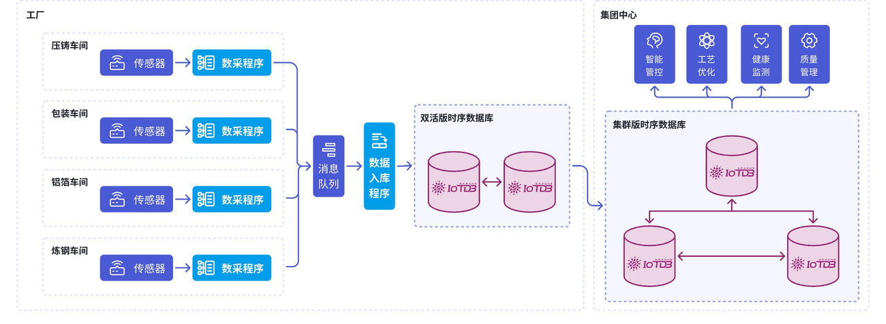 在钢铁冶炼、制造业等场景,用于生产全流程实时数据采集与分析,助力产能提升、质量优化与能耗降低